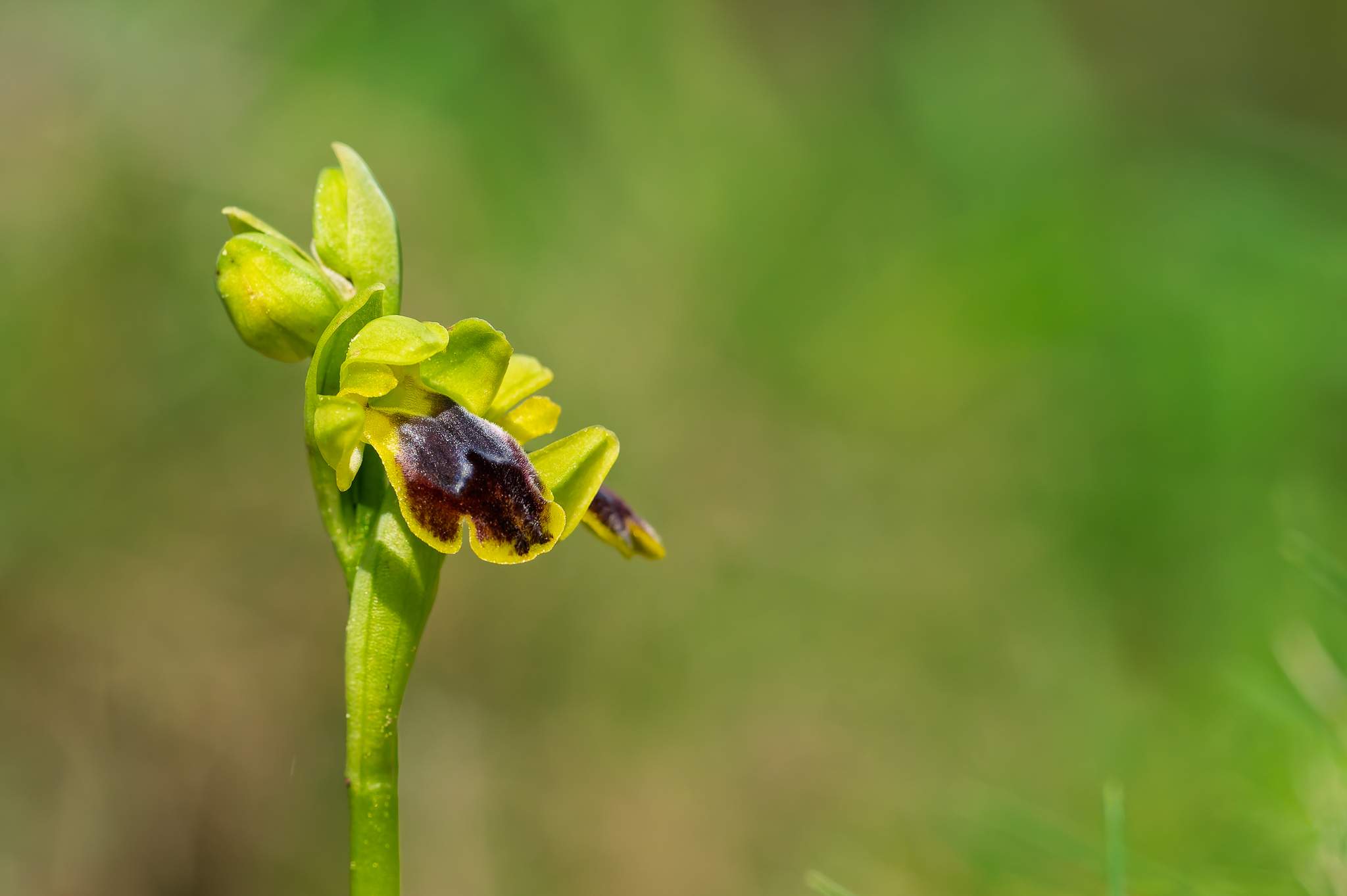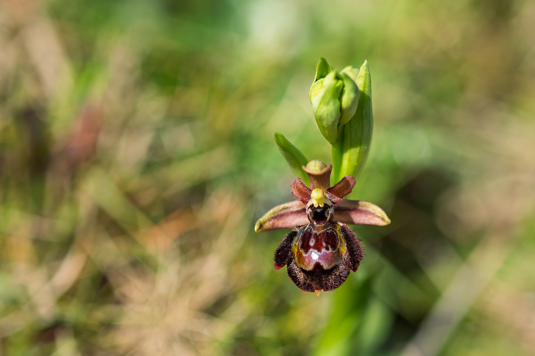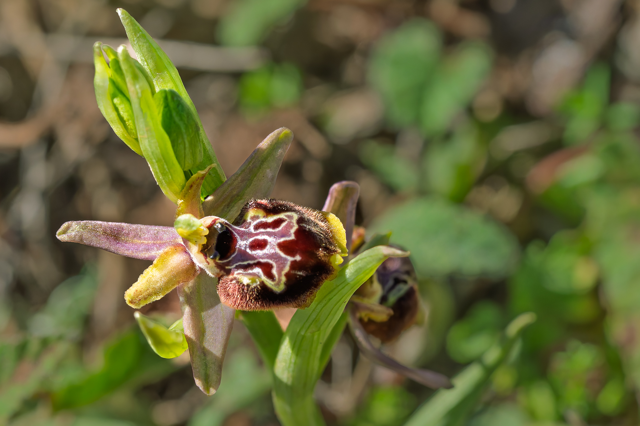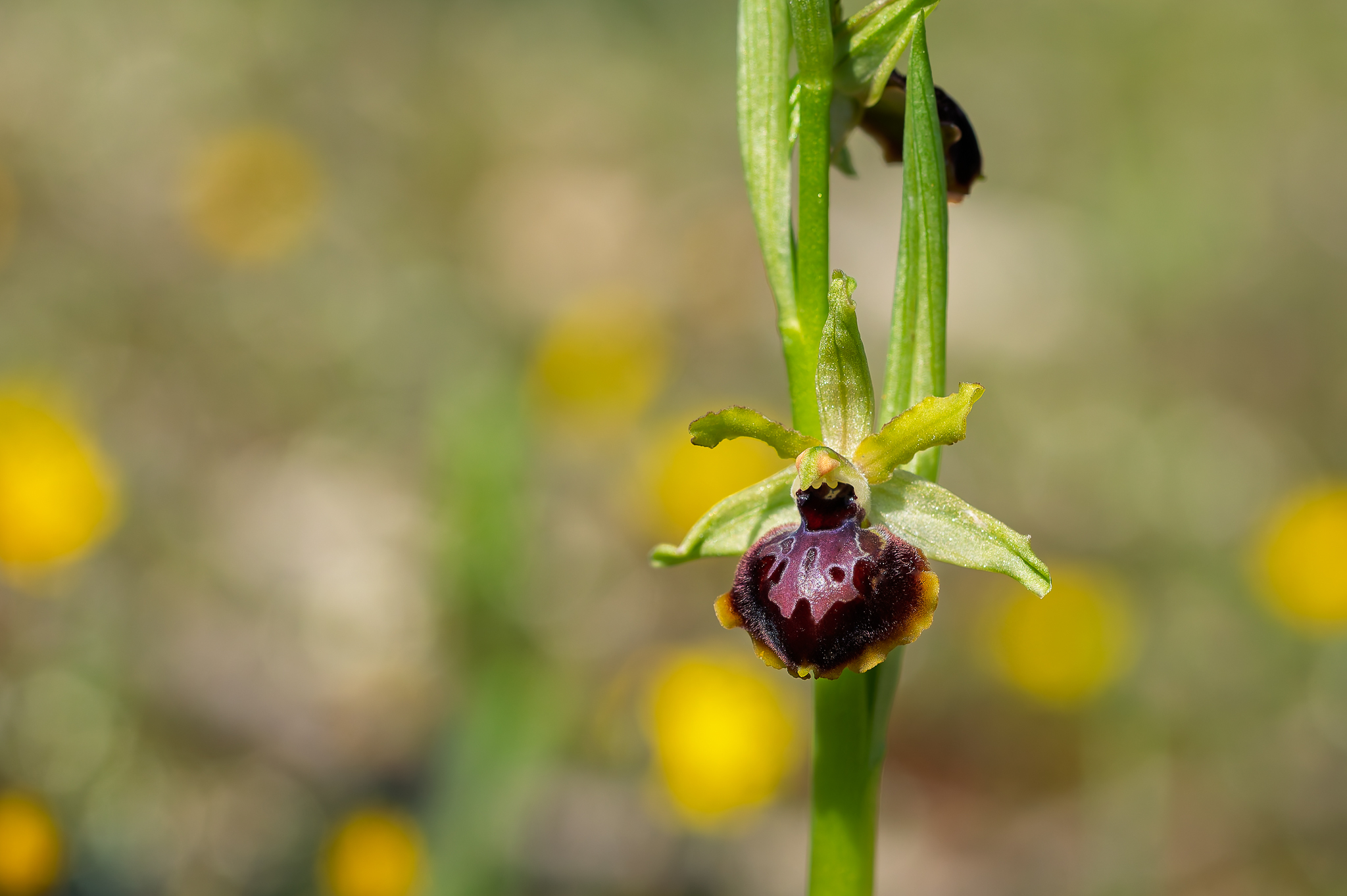 Nous prenons ensuite la direction de Carro au niveau du Viaduc où nous réalisons une des coches que rêve de faire chaque orchidophile, observer Ophrys speculum. Ce taxon est accompagné d'Ophrys arachnitiformis en fin de floraison, d'Ophrys passionis, des premiers Ophrys provincialis et Ophrys lutea ainsi que de l'hybride Ophrys provincialis x splendida.