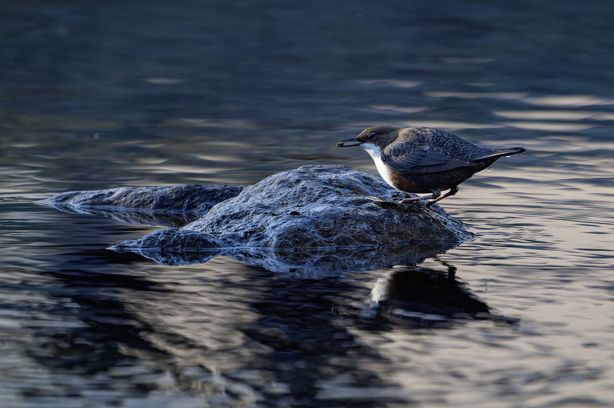 Une série à la lumière matinale du repas d'un Cinclus cinclus (Le Cincle plongeur) 😃