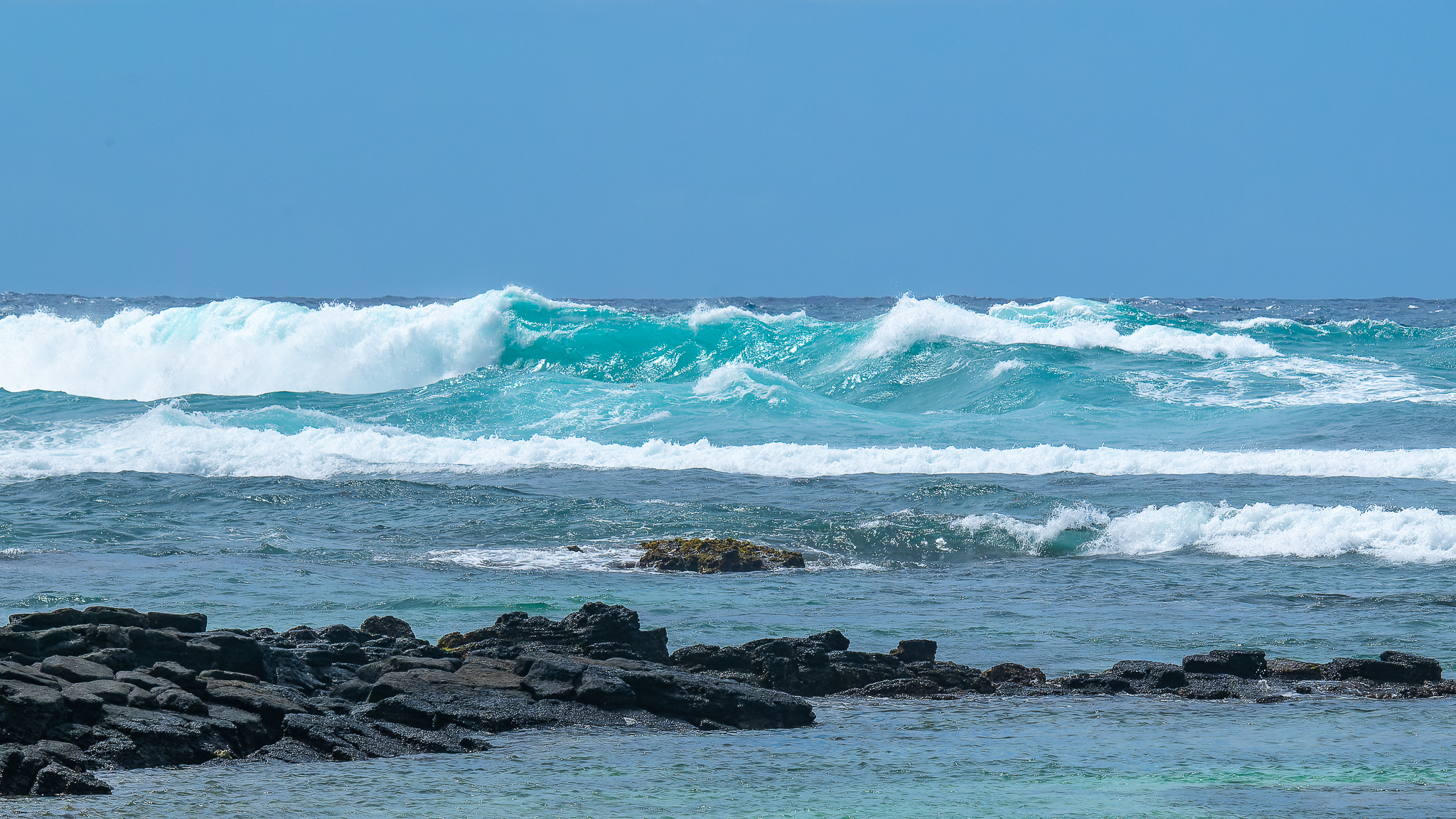 Vue depuis la plage de la Morne vers la pointe Ouest de l'Île